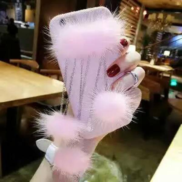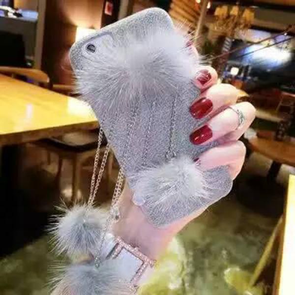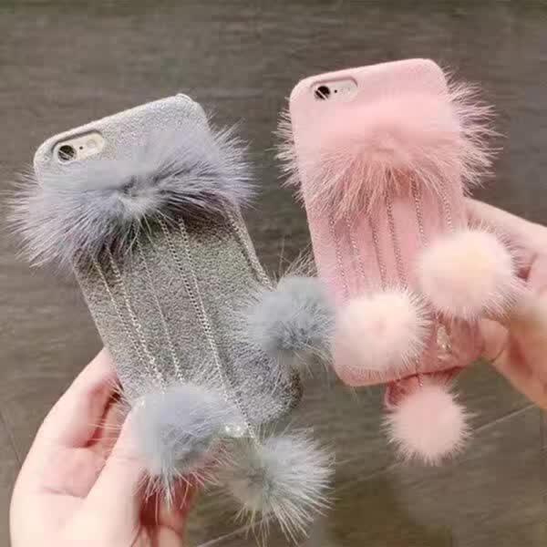 DIY Luxurious Small Fox Hair Chain Ball Pendants Cloth Type Cell Phone Case Cover For iPhone 7 6s Plus Images |