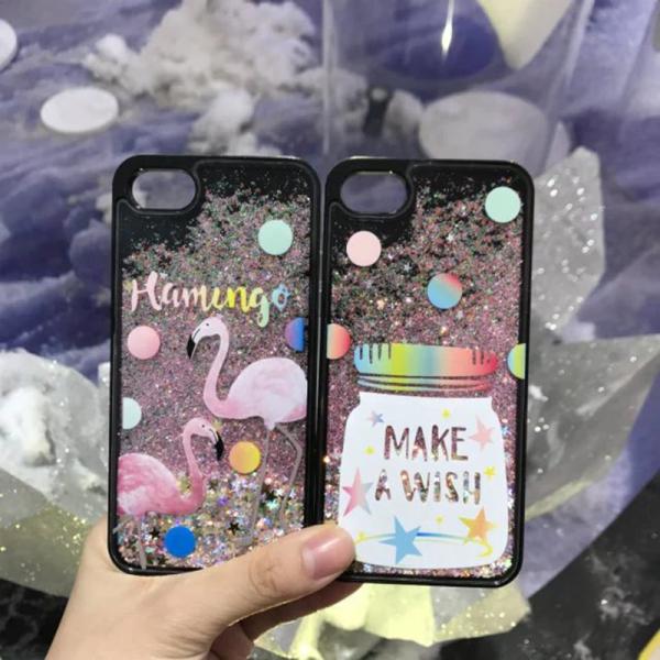 Hard PC Korea Style Flamingo Candy Cans Point Glitter Quicksand Black Cell Phone Case Cover For iPhone 7 6s Plus Images |