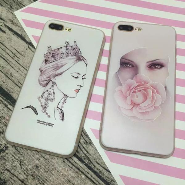 PC+TPU Silk Skin 3D Relief Painting Elegant Lady Face Pattern Cell Phone Case Back Cover For iPhone 7 6s Plus Images |